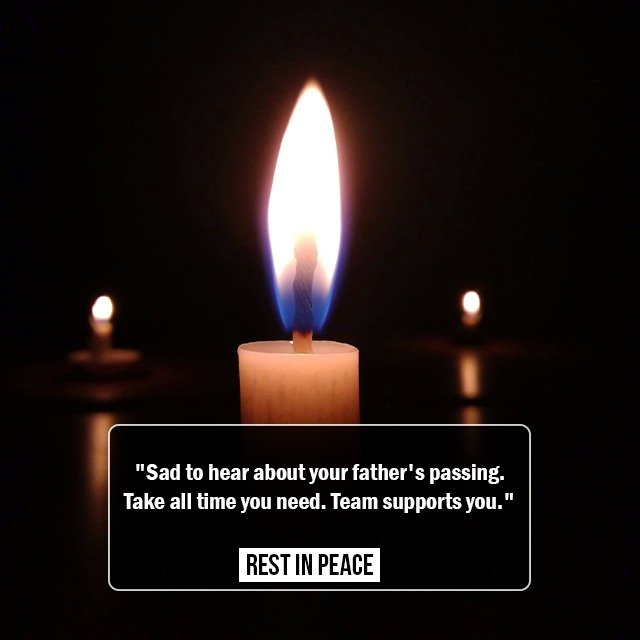 “Deepest condolences on your father’s passing. Take all the time you need. The team supports you.”