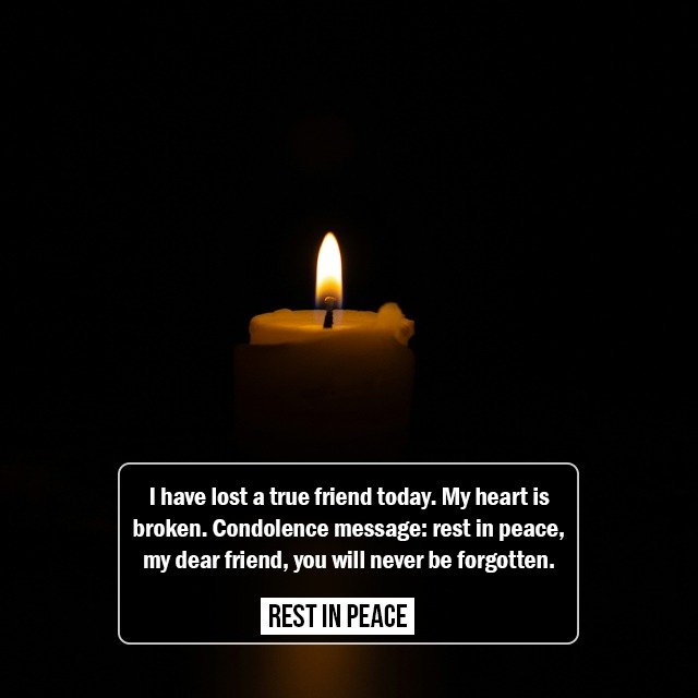 I have lost a true friend today. My heart is broken. Condolence message: rest in peace, my dear friend, you will never be forgotten.