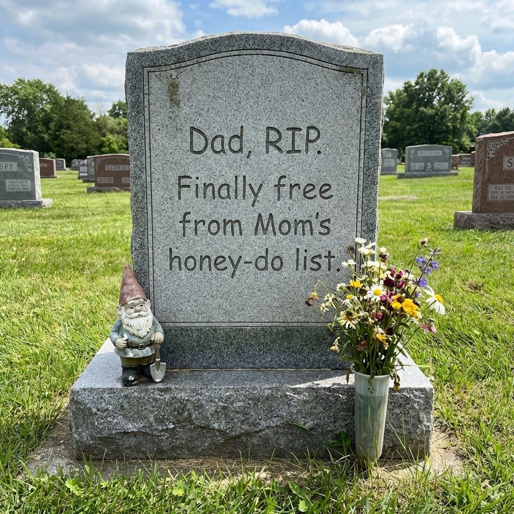 “Dad, RIP. Finally free from Mom’s honey-do list.”