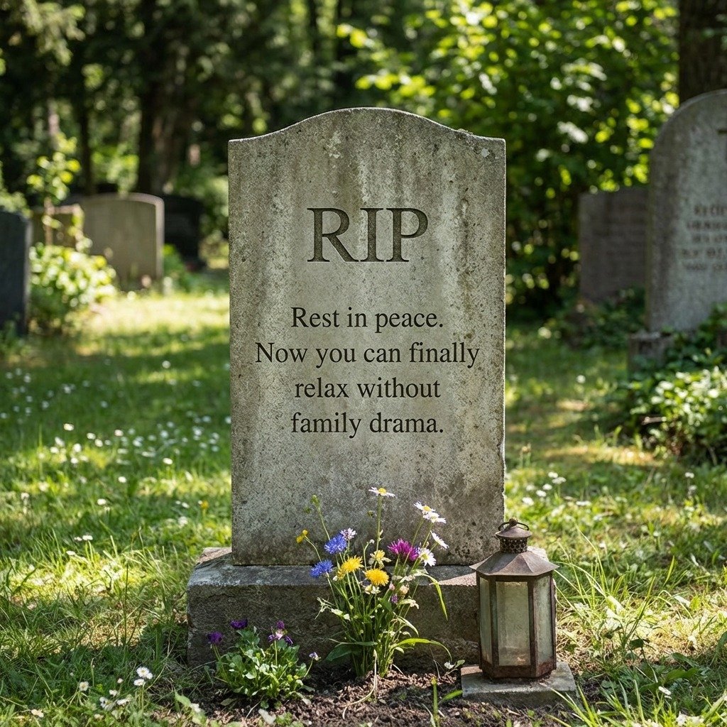 Rest in peace. Now you can finally relax without family drama.