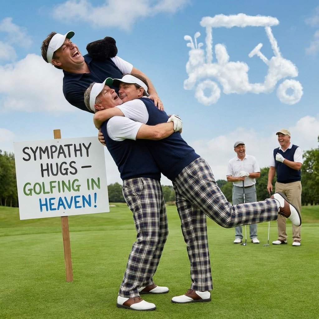 “Sympathy hugs – they’re probably golfing in heaven!”
