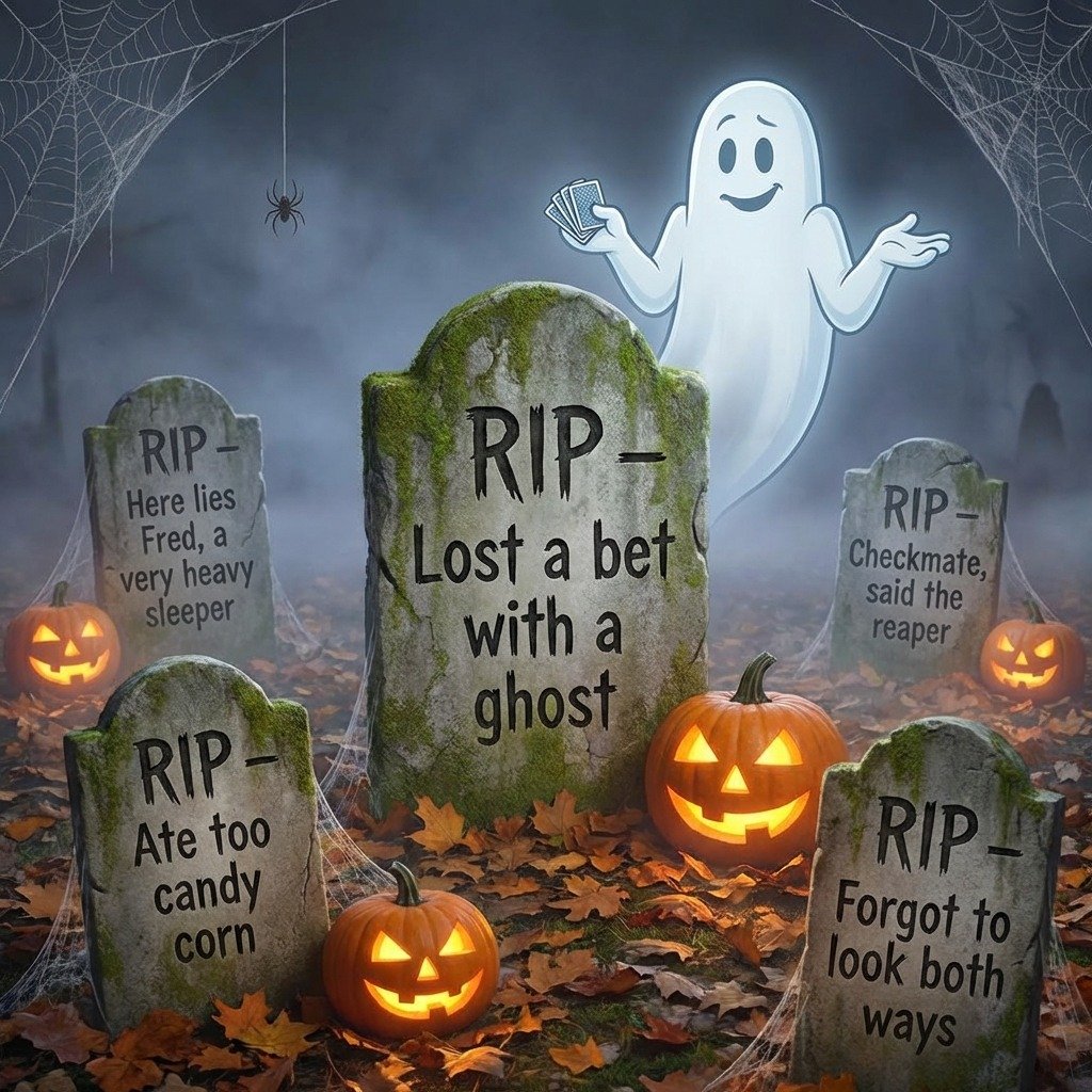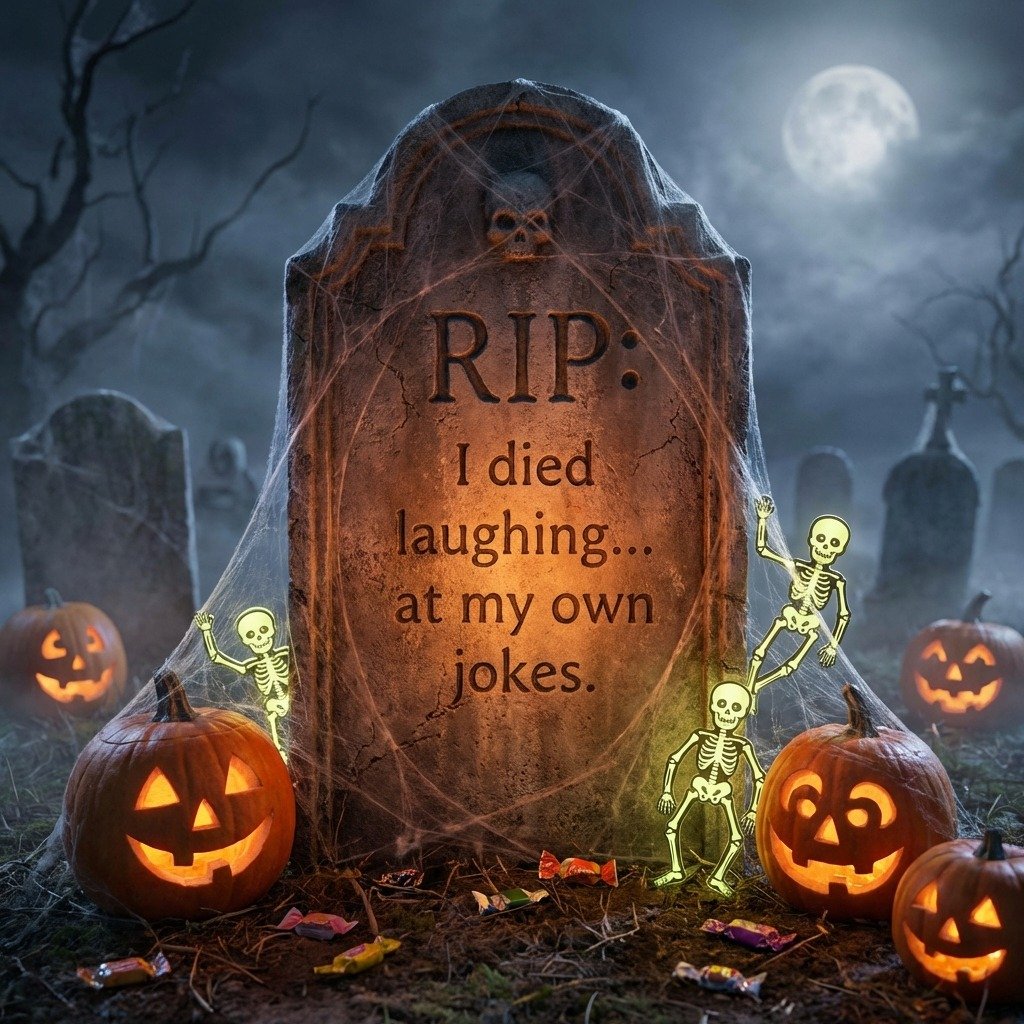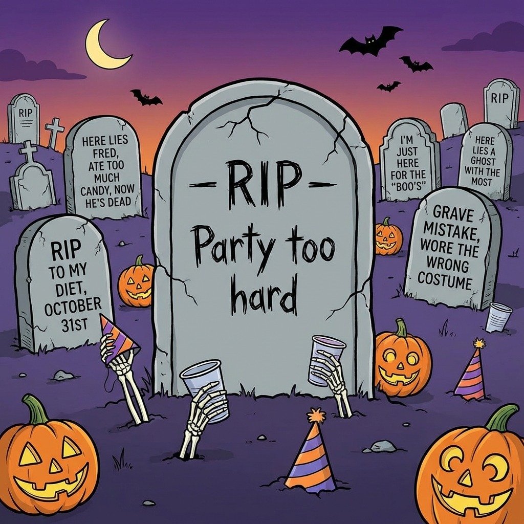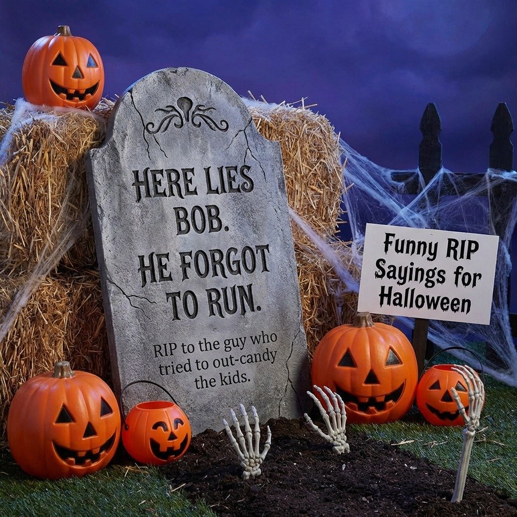 Funny RIP sayings for Halloween that blend spooky vibes with side-splitting humor. Perfect for tombstones, costumes, and parties. Get ready to laugh this Halloween
