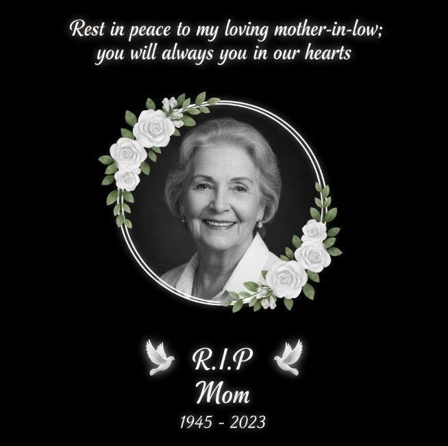 Losing a mother-in-law is like losing a second mother, a loving guide who touched our lives with warmth and care. Her kindness, wisdom, and quiet strength will remain forever in our hearts. Though she is no longer with us, her blessings live on in the family she nurtured with so much love. May her soul rest in peace, and may we honor her memory by carrying forward the values she taught us.